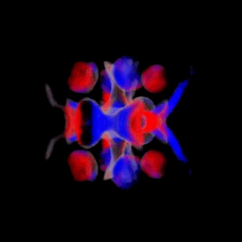 - Spatial Visualization of the CDAD asymmetry in 4D (EB,k) parameter space. The time encodes the binding energy EB. Red and blue quantify positive and negative CDAD asymmetry.